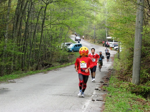 50km過ぎの折り返しランナーに高速アンパンマンが…。