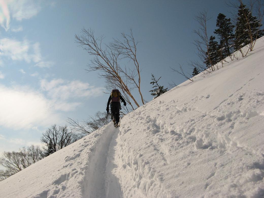 登りは先客のトレースのお陰で楽に?登れましたが、、、いやいや決して楽な道のりではなかった。