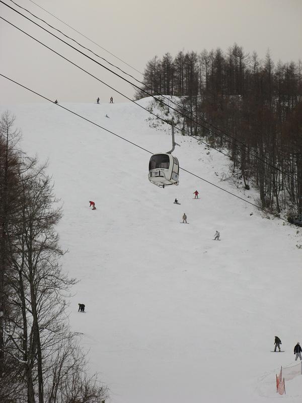 さて、ゲレンデは積雪情報こそ100cmとあるものの、所々ブッシュが出て雪質も今ひとつ。近隣のスキー場は全面滑走出来ないこともあってだろう人は多い。