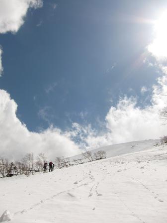 燧ヶ岳のこの時期は山スキーを楽しむ人でいっぱいです。