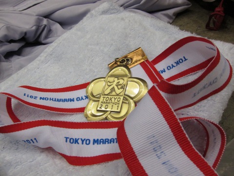 メダルはサクラ模様でした。実はスタートの紙吹雪の神はハートマークという凝ったものだったみたいです。
