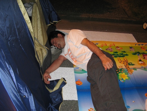 テントを張って、炭を熾して、多分自分は走らず飲み続けます。24時間耐久で
