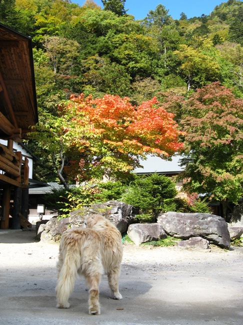 はまだ始まったばかりのようでした。八丁の湯ではこの犬が待っていてくれました。まるで前回会ったことを覚えているかのように…。