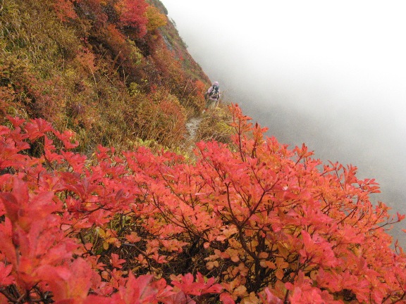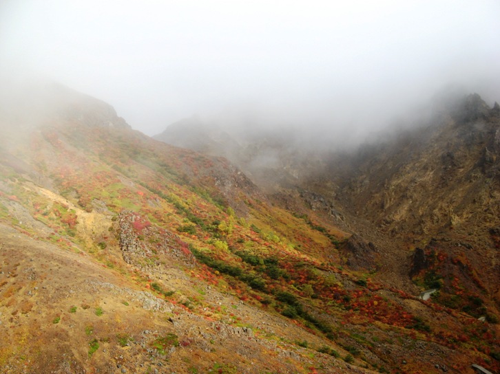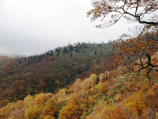 ガスがかかって視界が悪くせっかくの紅葉が見えない。