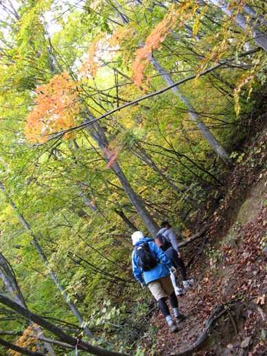 オロオソロシの滝を見ながら結構急な登りを登る。