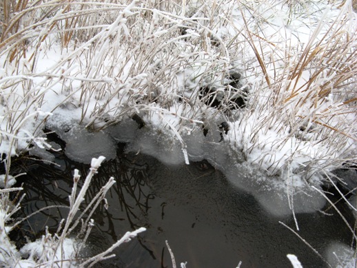 沼地の池は凍り始めていました。
