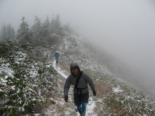 山頂付近は標高2,000m超えていたので気温は5℃以下。