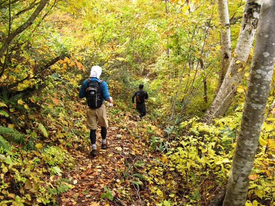 で色付いていた。フッカフッカの登山道を下る。下る。
