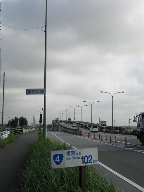 東京から102km地点の看板見っけ!ここから東京まで102kmか?再来週の城内坂ウルトラのコースより、東京まで走った方が楽かな?など考えながら走る。