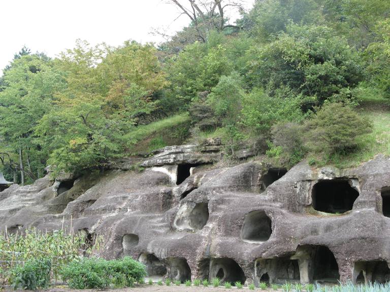 長岡百穴を通過時は再度冷たいドリスポを飲みながらじっくり歩きながら穴を見る。