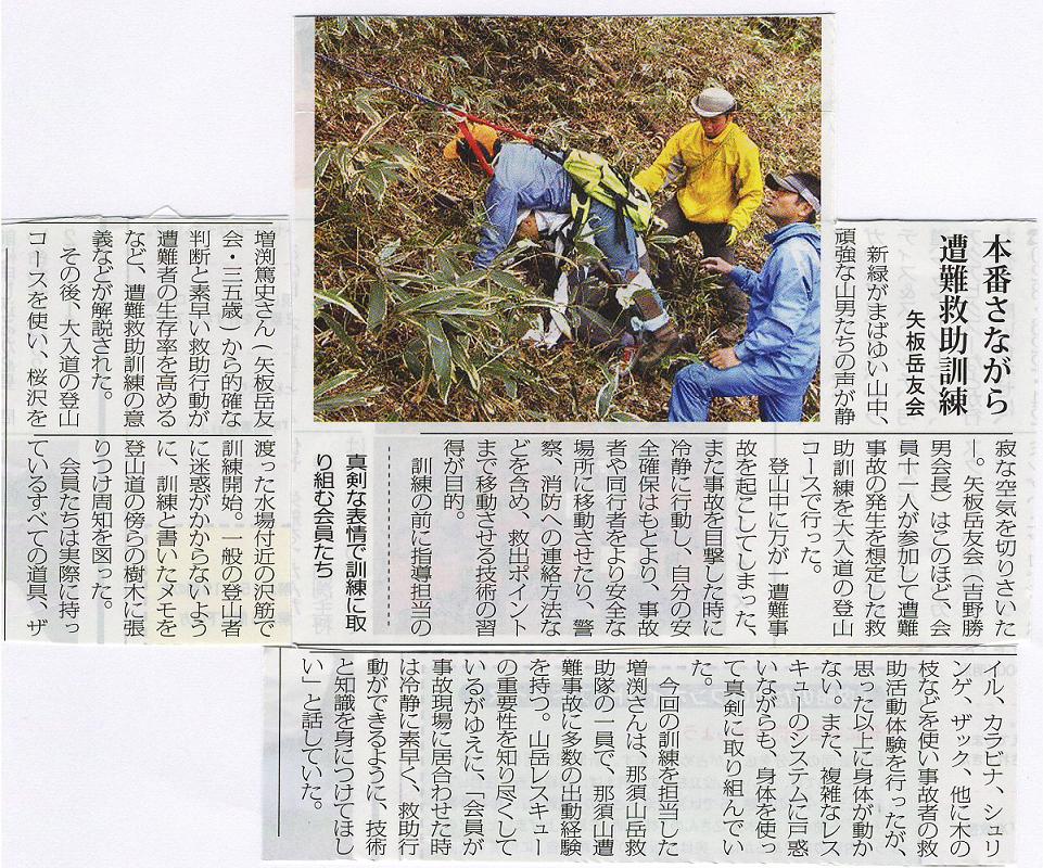 尾根から滑落した遭難者を救助し安全な場所まで運ぶ内容でしたが、仲間の滑落役(体重の軽い者)がリアルに滑落していく様子を見て一瞬空気が張り詰めた。