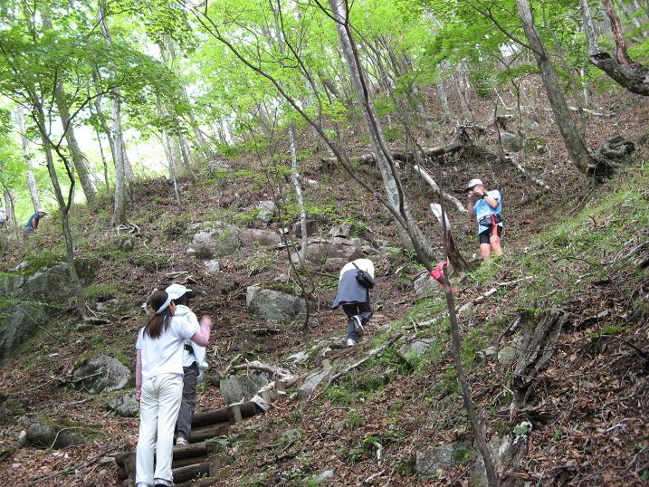 4月の下見の際にはまだ緑もなく寂しい雰囲気でしたが、初夏を迎え緑化運動の成果が出てきたのか山は新緑で清々しく、天気は晴れ渡り最高のマラニックを満喫しました。