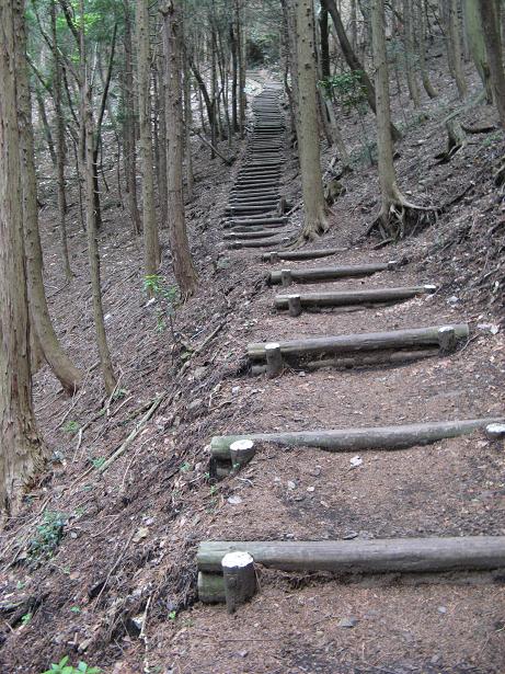 (写真は古賀志山のトレイル・階段、階段は勾配もきつく長くて一気に汗ダクに)
