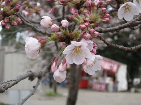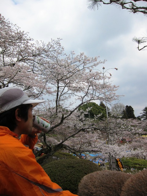 お好み焼きや牛串…、手に持ちきれないほど買い込んで昼からグビグビ開始!