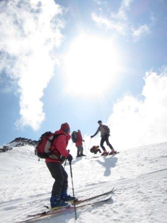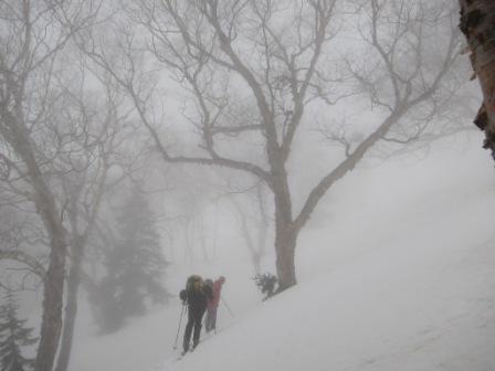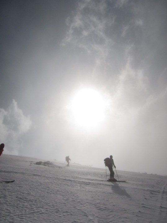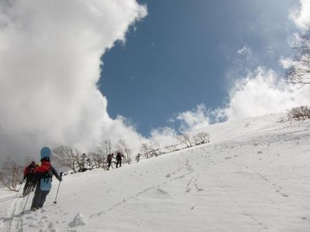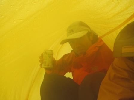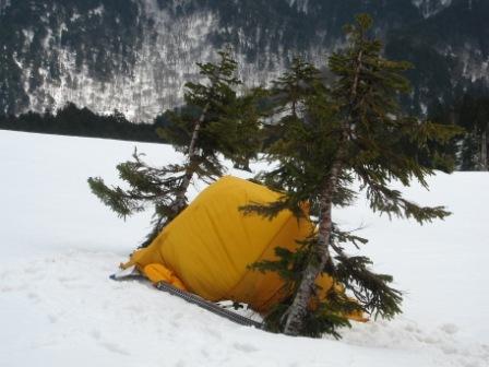 数センチの積雪と晴れ間がツエルトの外にありました。
