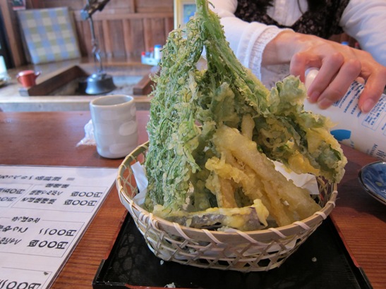 この店の天ぷらは噂通りの、そびえ立つような凄い量。