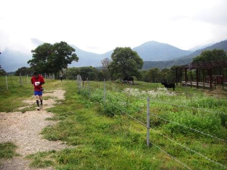 牛のいた牧場脇のコースで女子2位にあっさり抜かれ