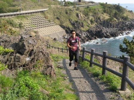 食べた後はちょっと海岸線のトレイルを走ったり
