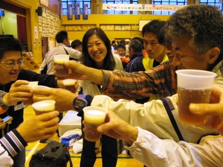 山頂では恒例の宴会