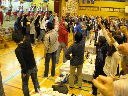 悪寒がするのでタイツやカイロを仕込み、靴下も2枚重ねで会場入りし前夜祭「前」から軽く乾杯。