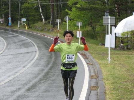 そんな中、ゼッケンが一つ違いのランナーが前を走っていたので声をかけると