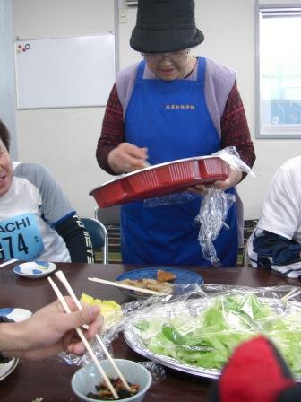 写真のおばちゃん、煮物やら漬け物をいっぱい盛りつけてくれます