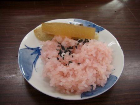 赤飯、煮物、漬け物、(豚汁もあったようなこと言ってました)