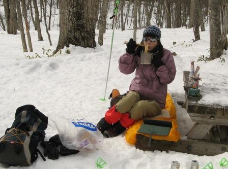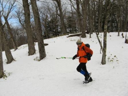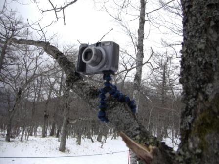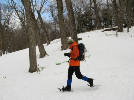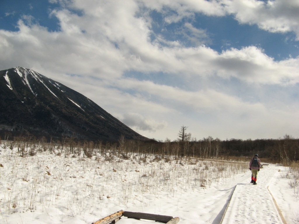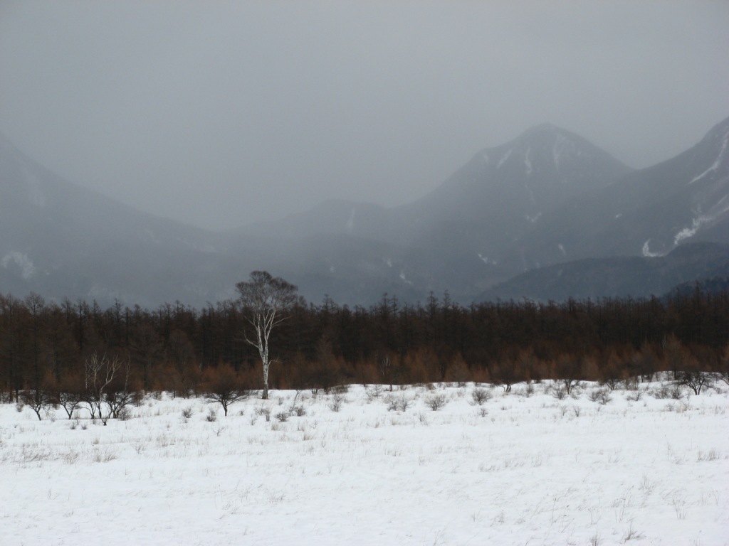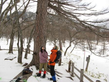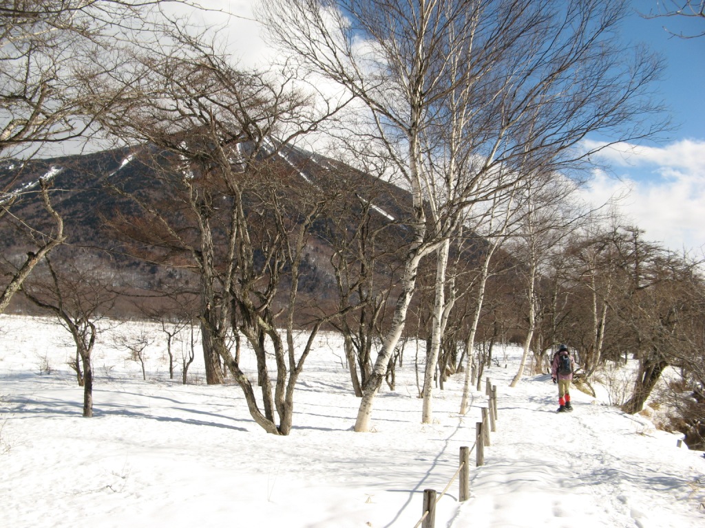 小田代ヶ原へ向かう林の雪は例年に比べ少なく感じられ