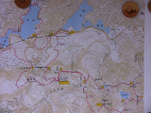 コースは丸沼温泉環湖荘から南へ~1.5km付近から東のトレイルに入り、菅沼の脇を抜け国道トンネルをくぐり丸沼スキー場~山頂駅~白根山~五色沼~前白根~五色山~弥陀ヶ池~山頂駅~蛍塚山横をスキー場下まで~大尻沼~丸沼温泉環湖荘の27km