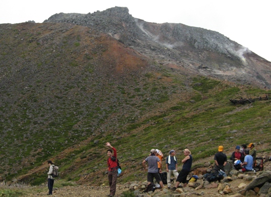 前白根山でもスタッフに写真を撮ってもらう。