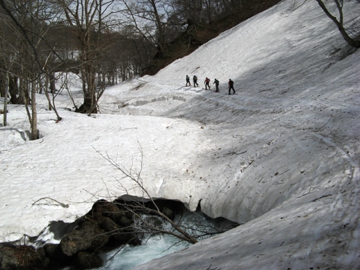 我慢仕切れず谷へ滑り込む皆々。自分もつい滑り込んでしまう。