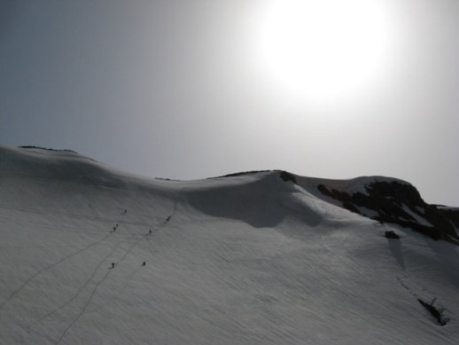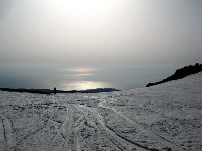 小さい頃からこの山を見て育った自分にとって、山頂からの斜面を滑ること、それは感無量。