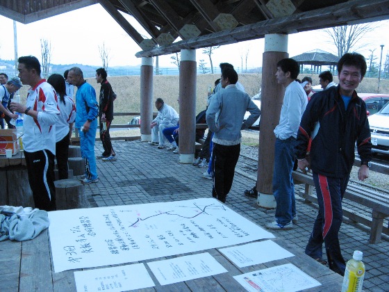 スタート前、寒かったのでアップを兼ねて一緒に参加した師匠のザトペックさんとアップに出かけました。