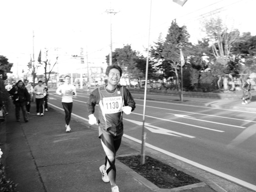 10km過ぎにY師匠が抜いていった。きれいなフォームだ。