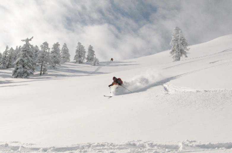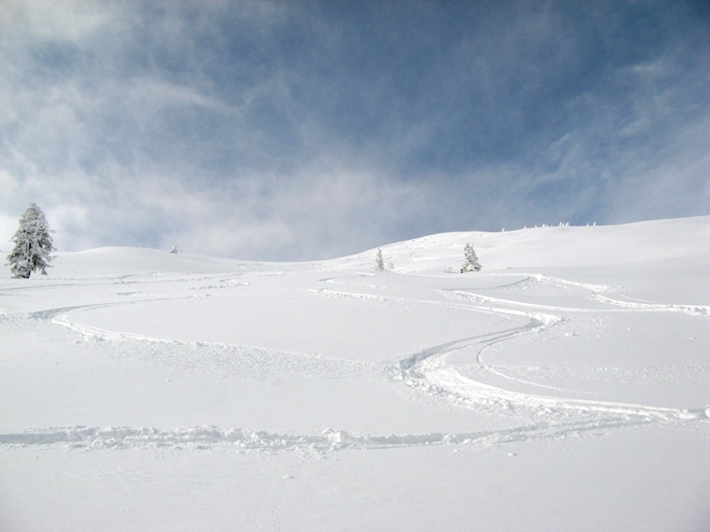 一面どこも処女の深雪斜面の滑走は気持ち良すぎ。