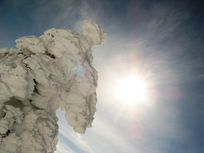 この雪の中でも汗だく。サクサクの雪を握って顔に付けたり、口に入れたりしながら山頂を目指します。